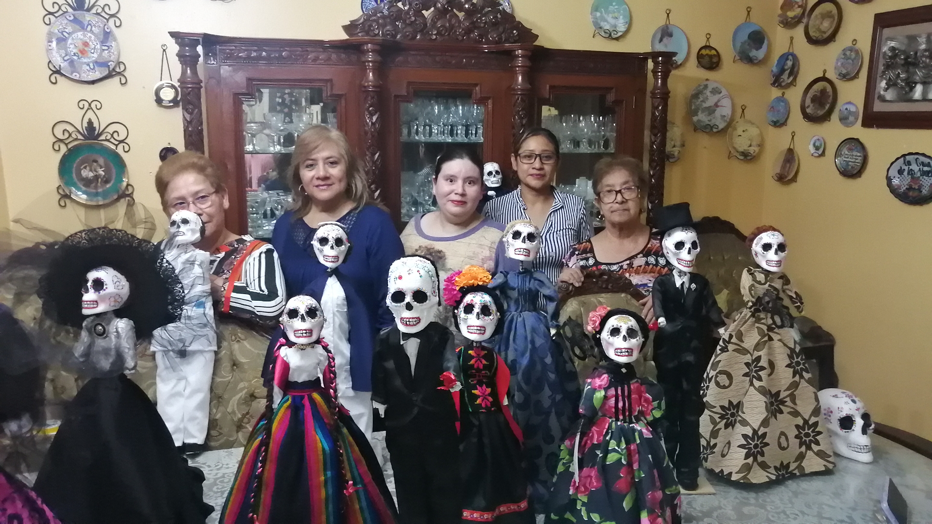 Marimar Marató, Irma Vázquez Castillo, Roxana Molina Cervantes, Margarita García Rodríguez, Leonor García y Jorge Morató son el equipo que por varias horas laboran para darle vida a las calacas.