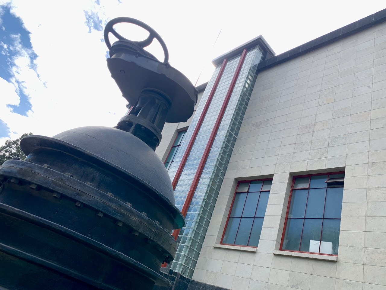 Flotan secretos magnéticos en este complejo acuático semi abandonado y vital para que desde los años 40 se ducharan, bebieran y regaran sus plantitas millones de mexicanos de la capital del país, entre ellos Dolores del Río, Javier Solís, Horacio Casarín y Lázaro Cárdenas. En los días de ese México distinguido que fascinaba al mundo, el querido “Tata”, presidente General de División, vino a inaugurar la “Estación de Bombeo Xotepingo”. Su construcción y la fachada con dos columnas de vitroblock, ultra geométricas, son funcionalistas. Es decir, lo guía el principio de que un edificio debe crearse con base en su función, no en su belleza. Si es así, a los arquitectos se les botó una válvula mental: la planta es imponente y bellísima.